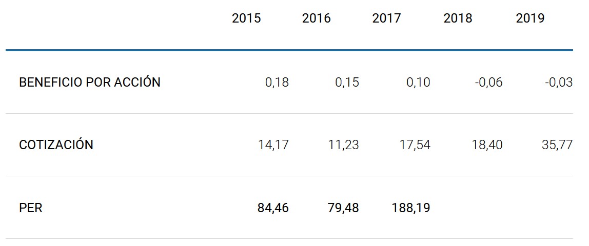 La rentabilidad por dividendo es muy poco atractiva (0,18%).