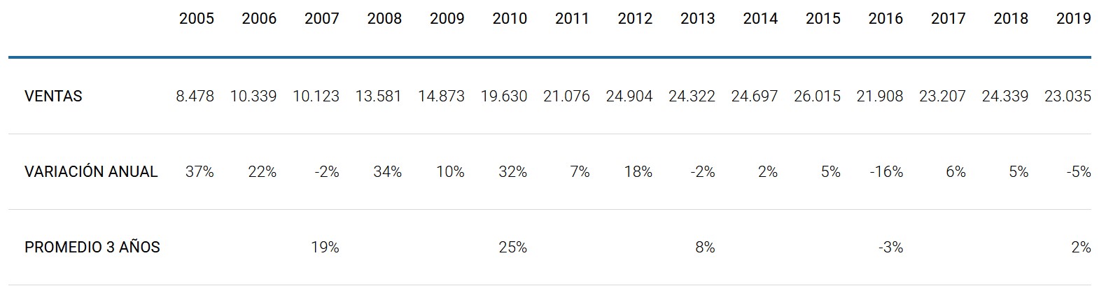 La evolución de las ventas de Naturgy ha sido la siguiente:
