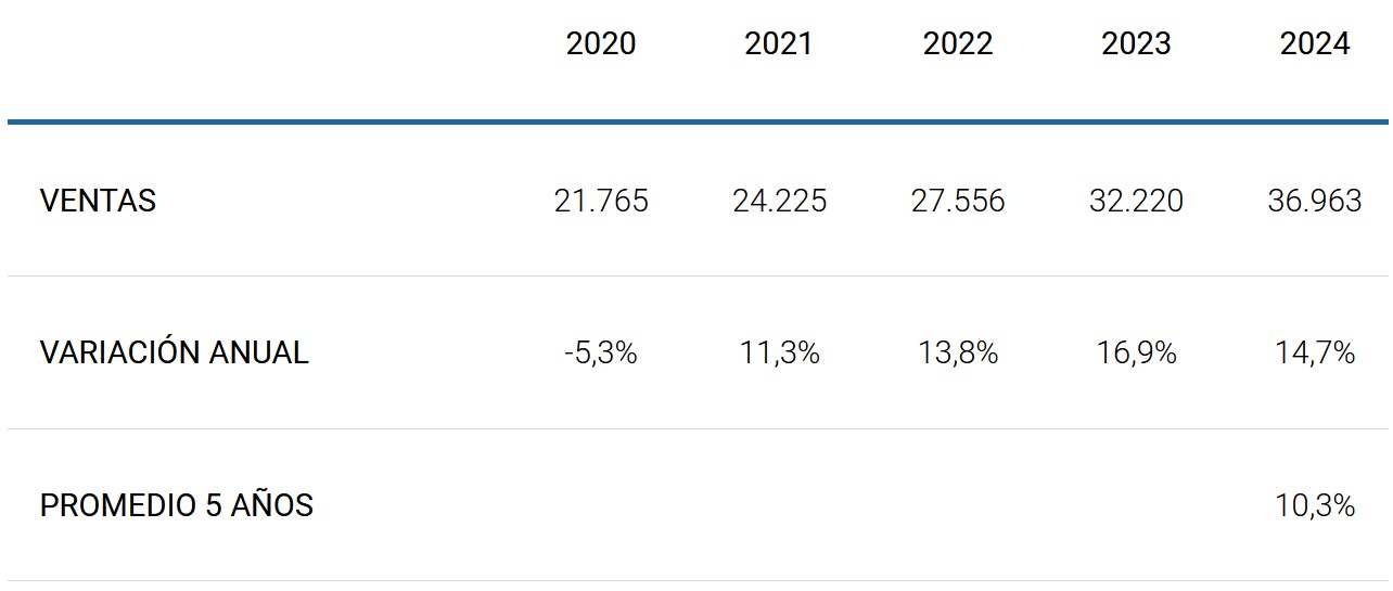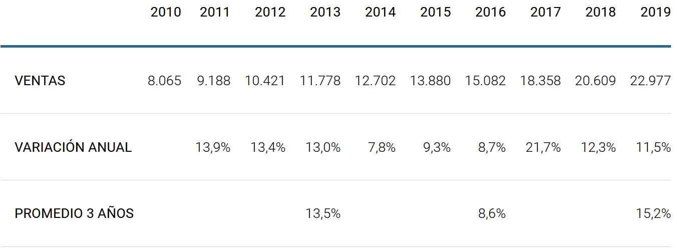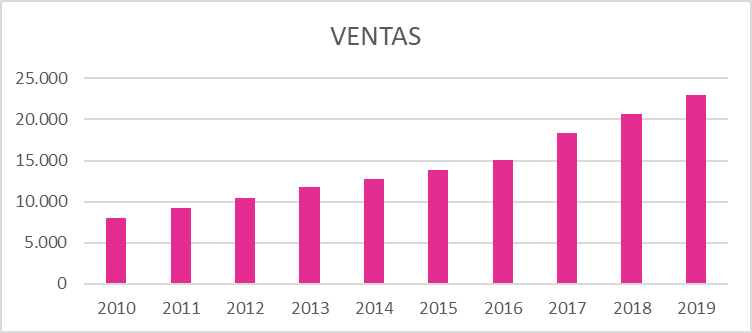 Sus cifras de ingresos han tenido una evolución muy favorable en todo el periodo estudiado:
