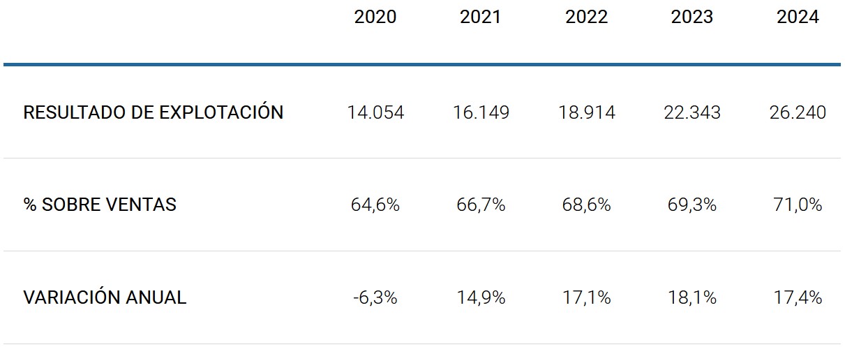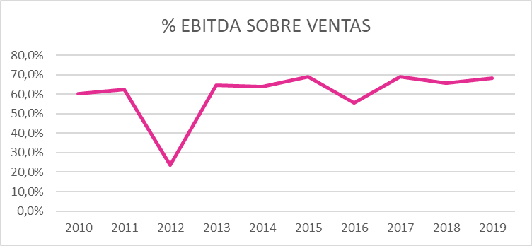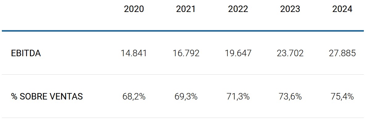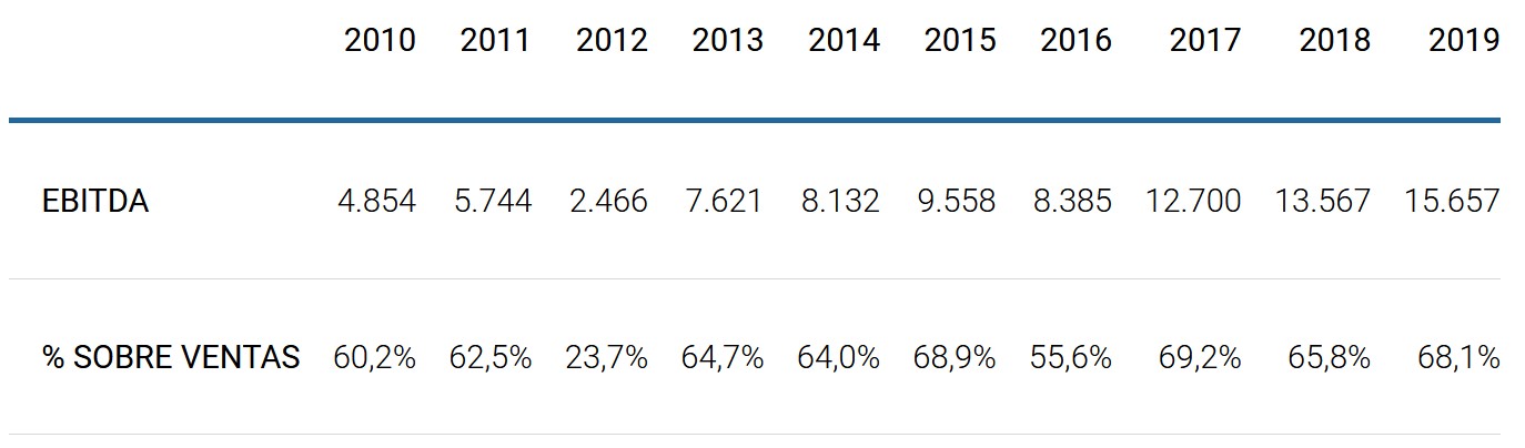 El Ebitda también ha tenido una evolución muy favorable tanto en su importe como en porcentaje sobre ventas: