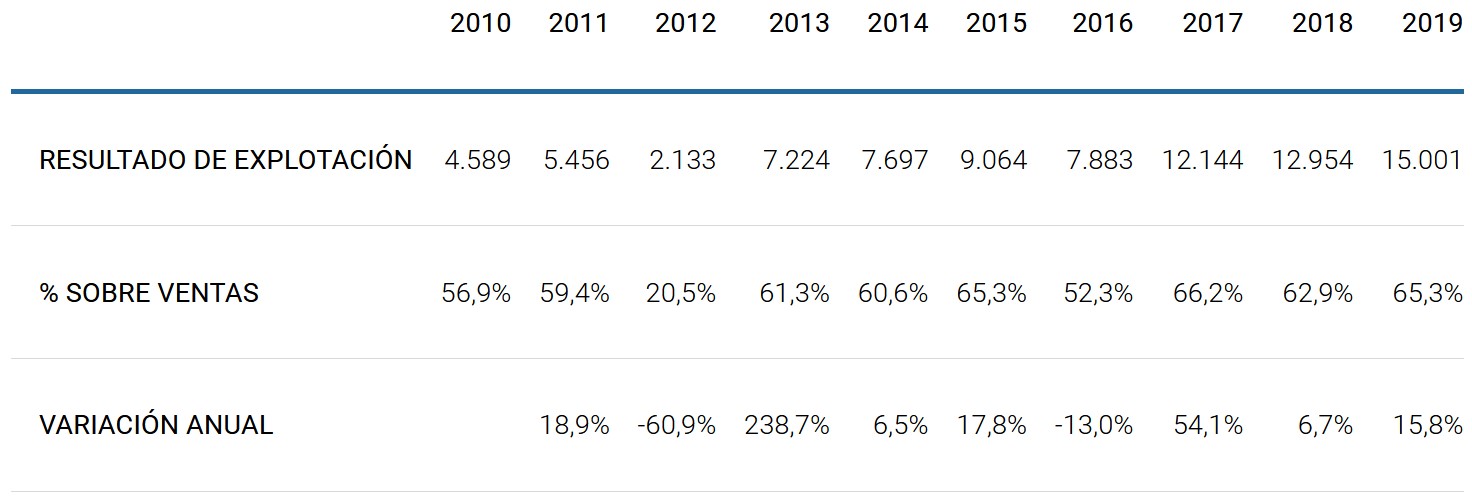 Con la excepción de este ejercicio 2.019-2,020, se espera que el resultado de explotación continúe aumentando: