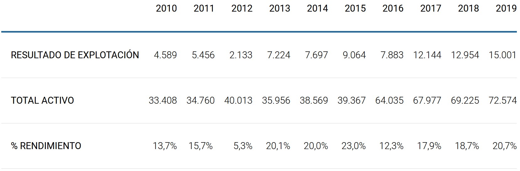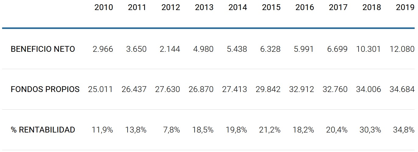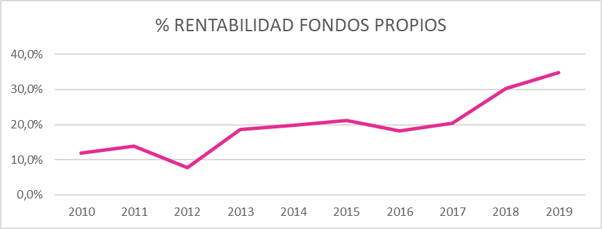 La rentabilidad que consiguen sobre sus fondos propios ha mejorado mucho en el periodo estudiado hasta situarse en el 34,8% en el ejercicio 2.018-2.019.