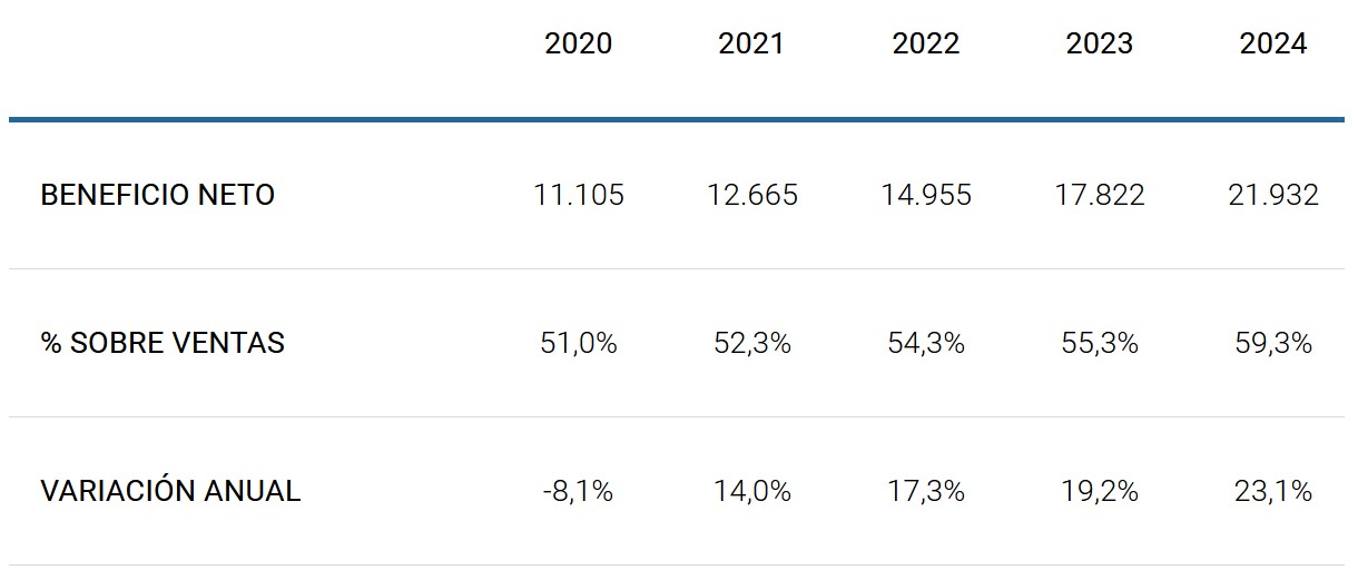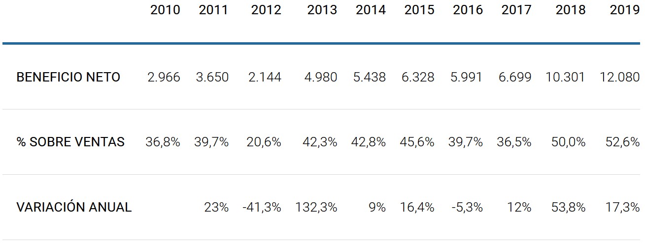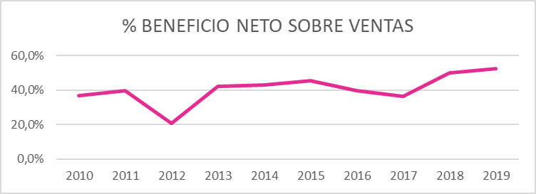 El porcentaje de beneficio neto que consiguen ha mejorado mucho en el periodo estudiado y se ha situado en niveles muy elevados: