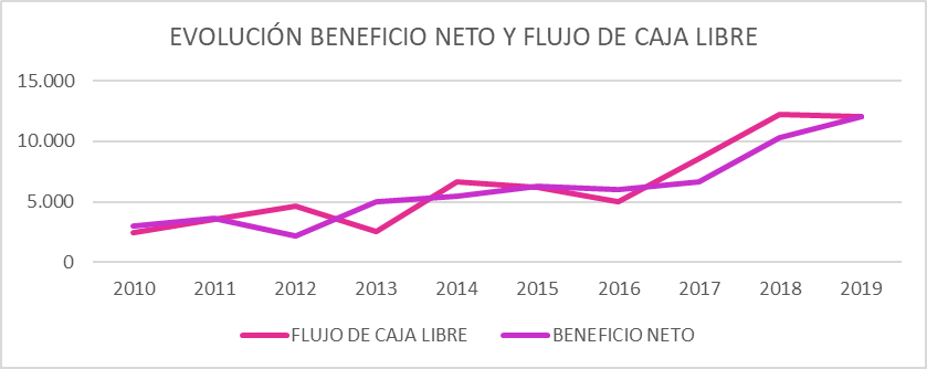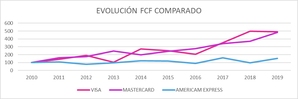 La evolución comparada del flujo de caja libre de Visa con el de sus principales competidores es la siguiente: