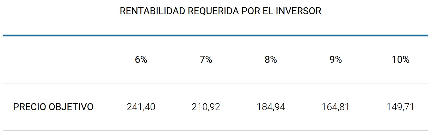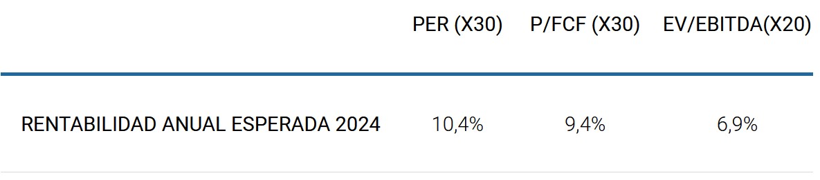 La rentabilidad anual esperada, en caso de mantener la inversión hasta el año 2.024, en base a las previsiones de los analistas se sitúa entre el 6,9% y el 10,4%: