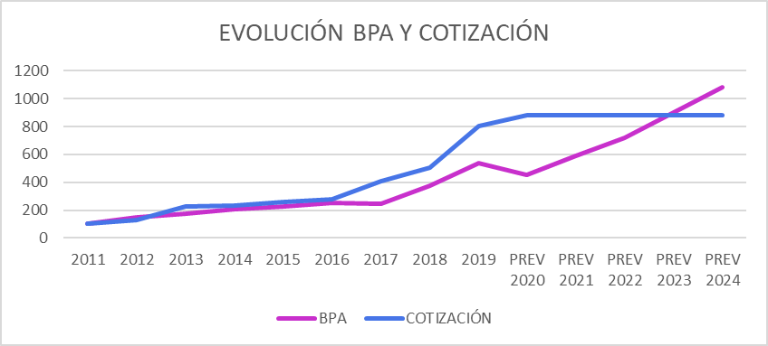 EVOLUCIÓN DEL BENEFICIO POR ACCIÓN Y LA COTIZACIÓN