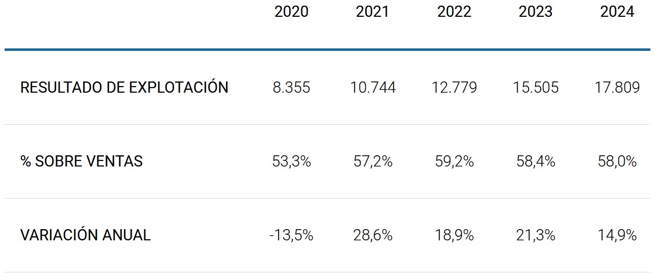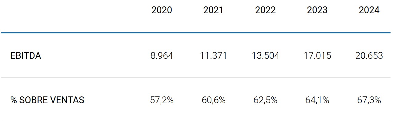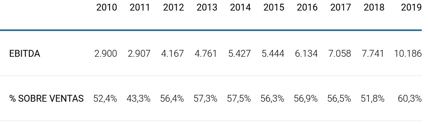 El Ebitda también ha tenido una evolución muy favorable en el periodo estudiado: