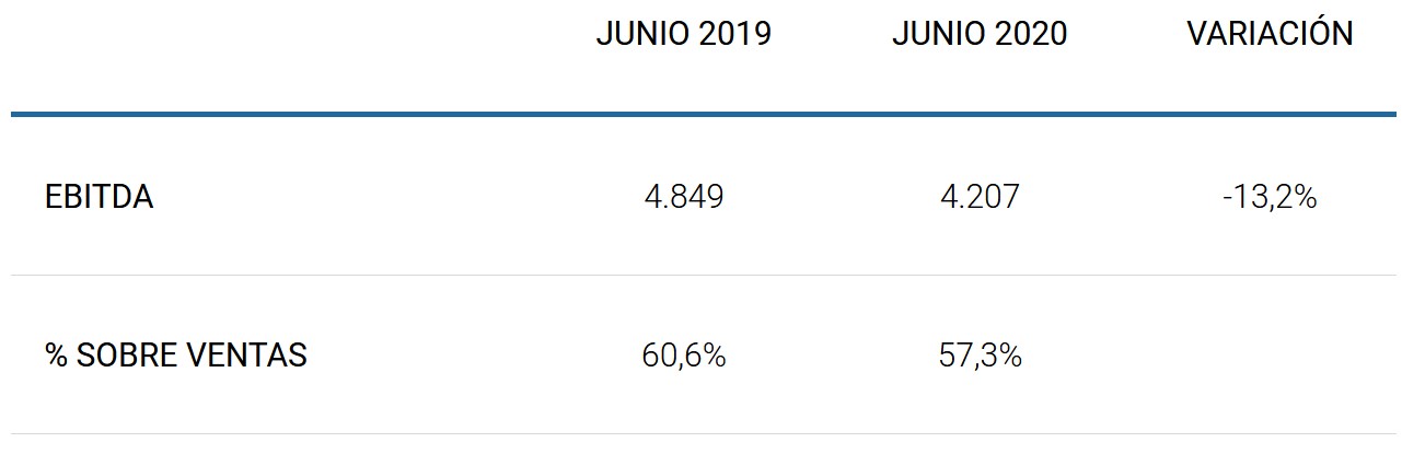 En el primer semestre de este ejercicio el Ebitda se ha reducido el -13,2% con respecto al ejercicio anterior: