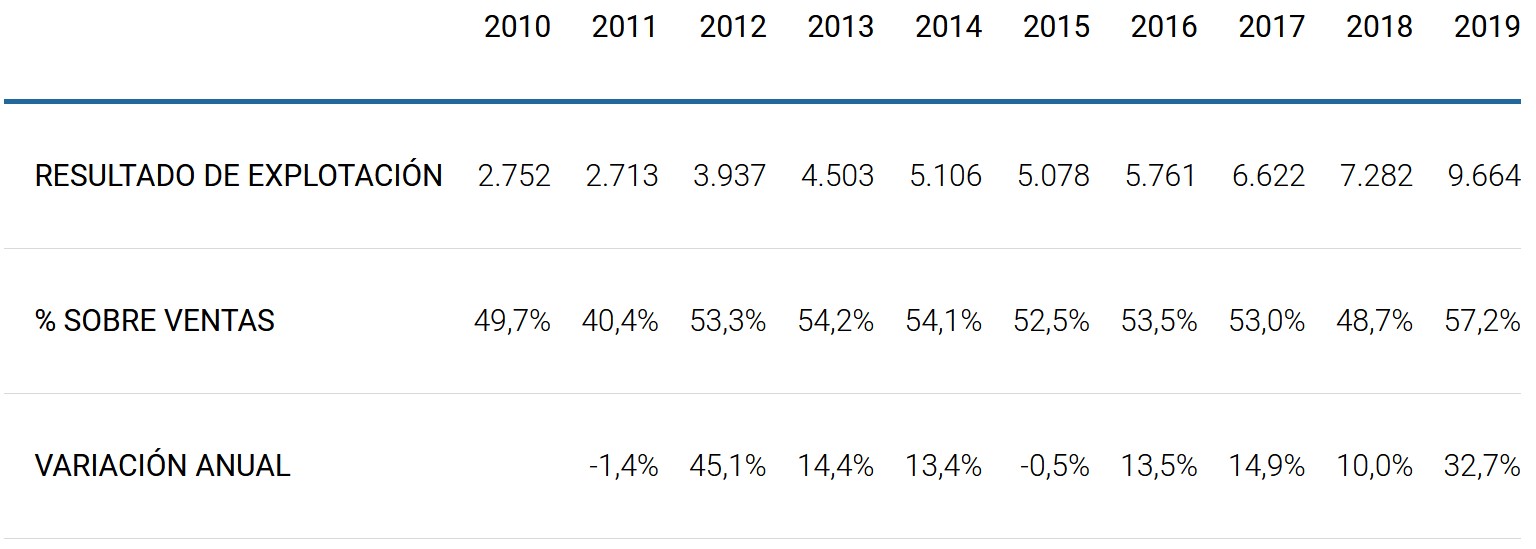 Con la excepción de este ejercicio 2.019 se espera que el resultado de explotación continúe aumentando fuertemente: