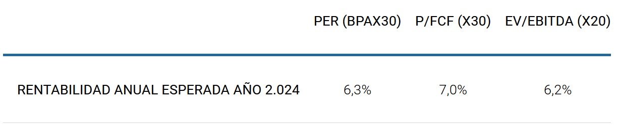La rentabilidad anual esperada, en caso de mantener la inversión hasta el año 2.024, en base a las previsiones de los analistas se sitúa entre el 6,3% y el 7%: