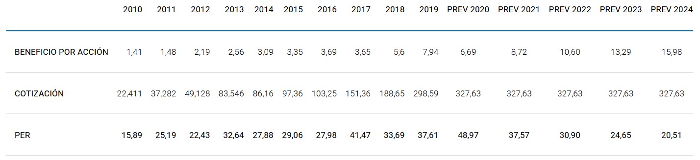 Donde podemos ver que la cotización ha aumentado por el aumento del beneficio por acción y por la expansión de múltiplos.