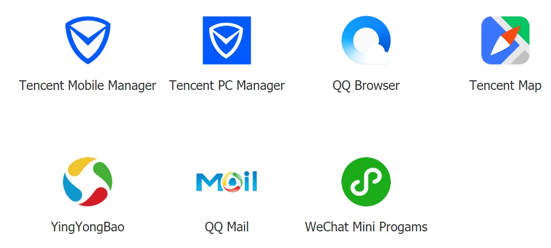 Otras plataformas ofrecidas: Tencent map, Tencent Mobile Manager, Tencent PC Manager y YingYongBao.