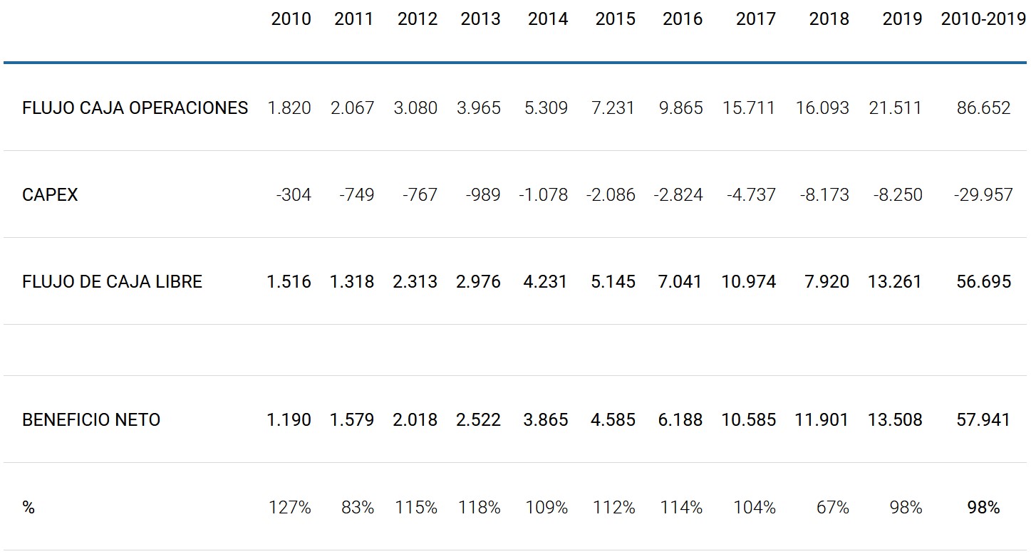Tencent Holdings cuenta con una muy buena capacidad para convertir sus beneficios en flujo de caja libre: