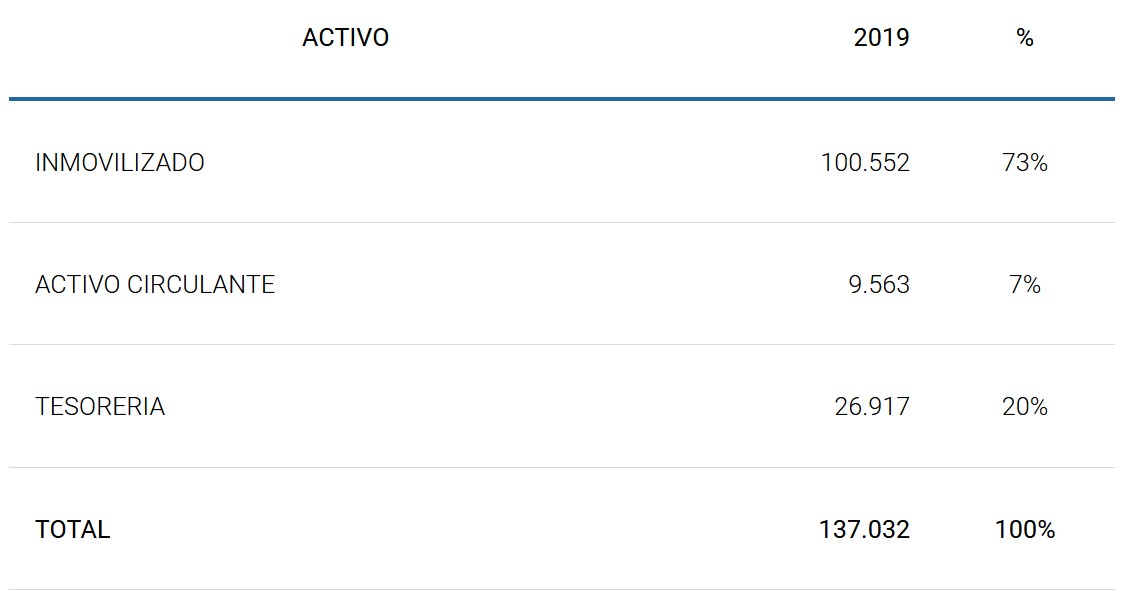 El resumen del balance de situación de la empresa a 31/12/2019 es el siguiente: