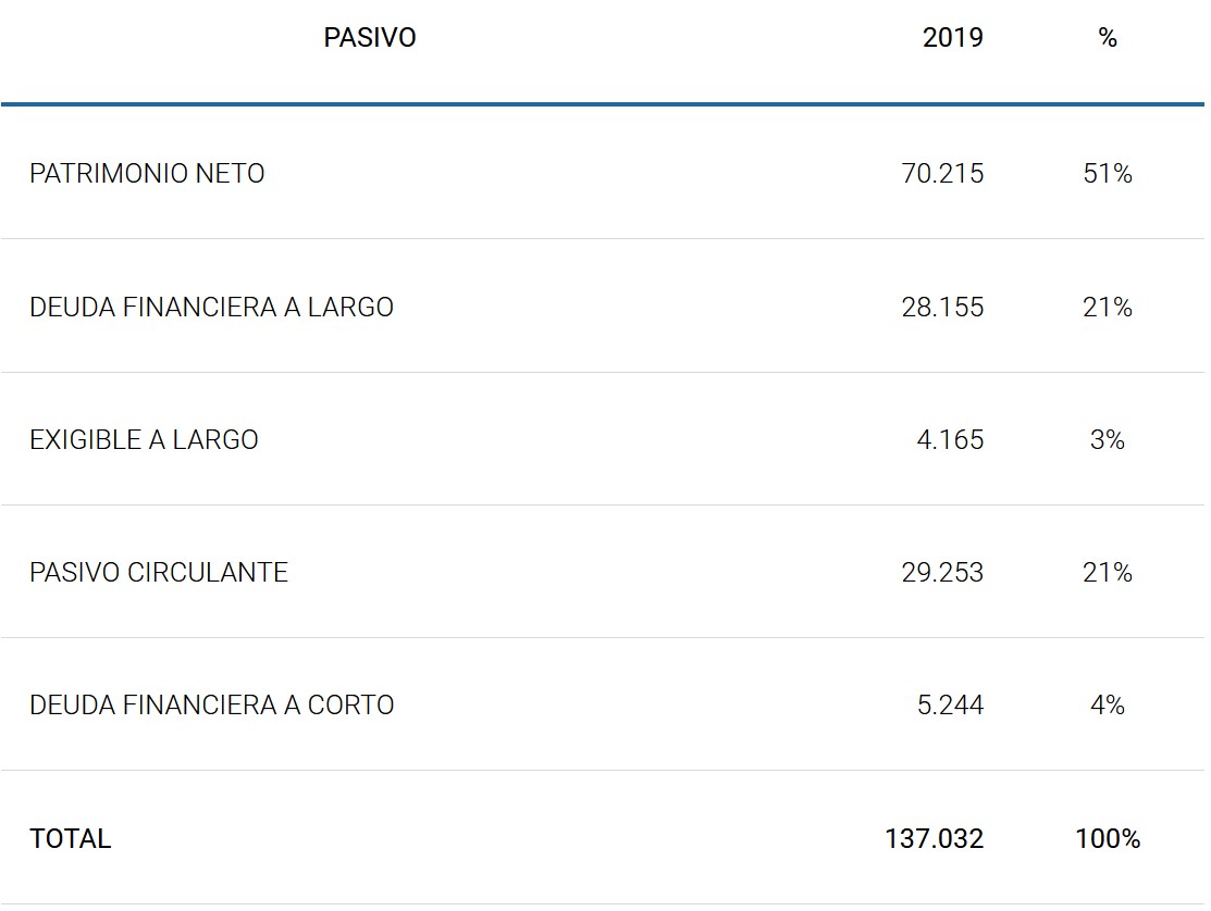 El endeudamiento de la empresa, restando la tesorería del exigible, es del 57% y su fondo de maniobra y su posición financiera a corto plazo son positivos: