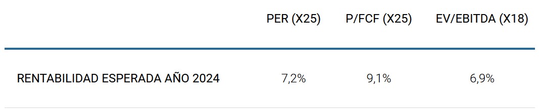La rentabilidad anual esperada en base a las previsiones de los analistas, en caso de que se mantenga la inversión hasta el año 2.024, se sitúa entre el 6,9% y el 9,1%: