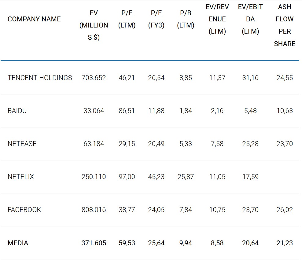 Los múltiplos de Tencet comparados otras empresas competidoras son los siguientes: