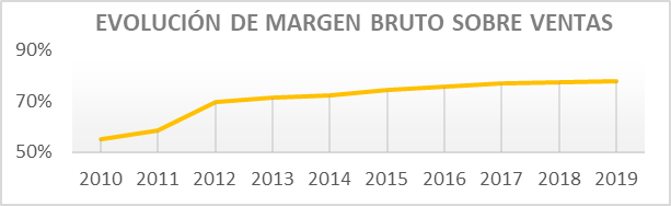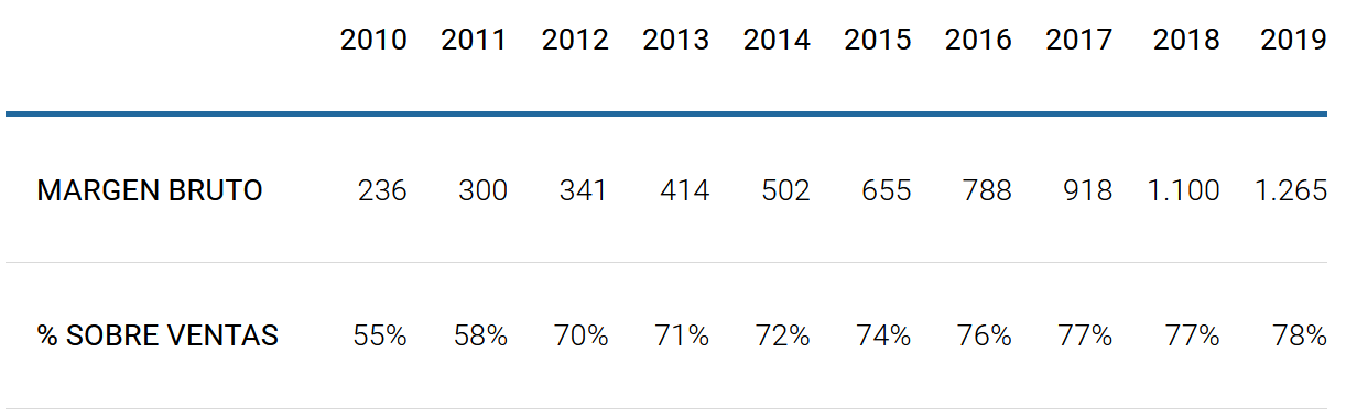 El porcentaje de margen bruto que consiguen, además de presentar una tendencia creciente, es muy elevado: