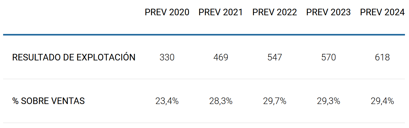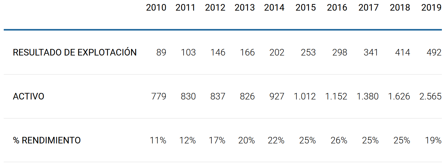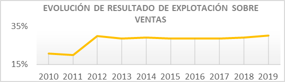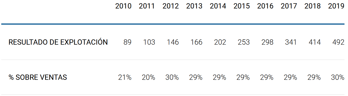 Sus porcentajes de resultado de explotación también son muy elevados y presentan una tendencia creciente: