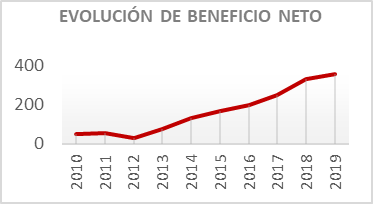 El beneficio neto también ha evolucionado muy favorablemente en todo el periodo estudiado: