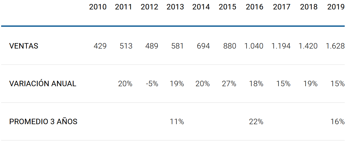 La evolución reciente de sus cifras de ventas ha sido la siguiente: