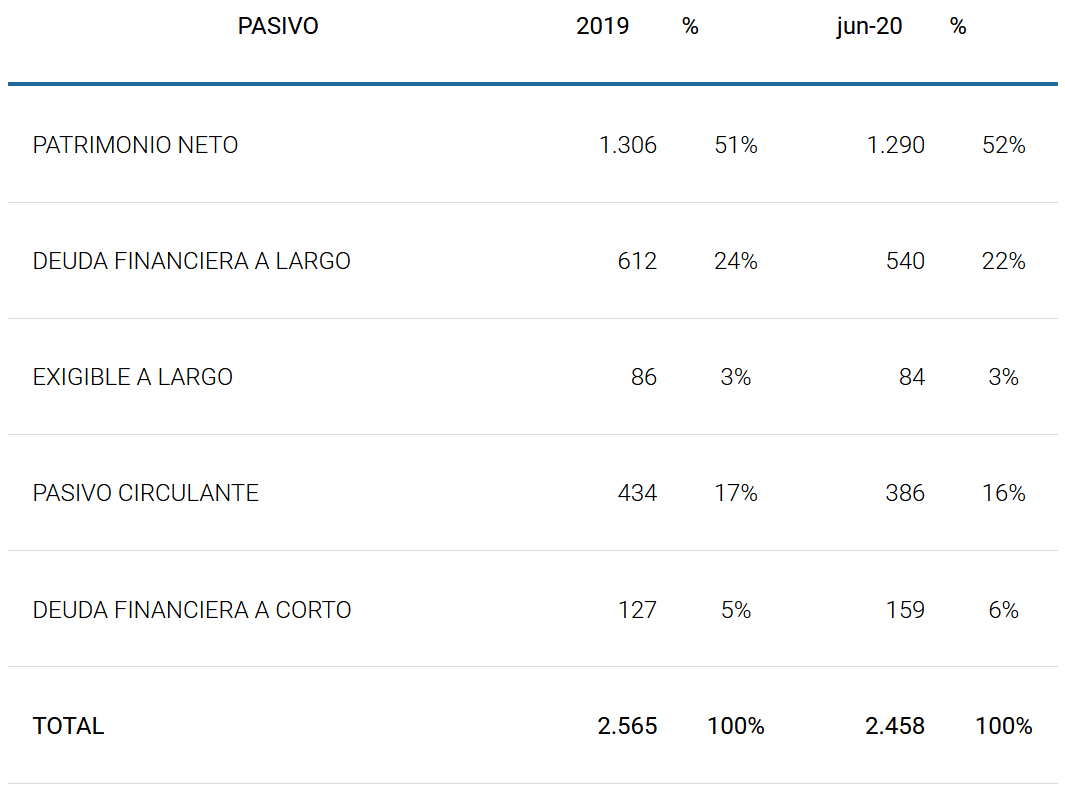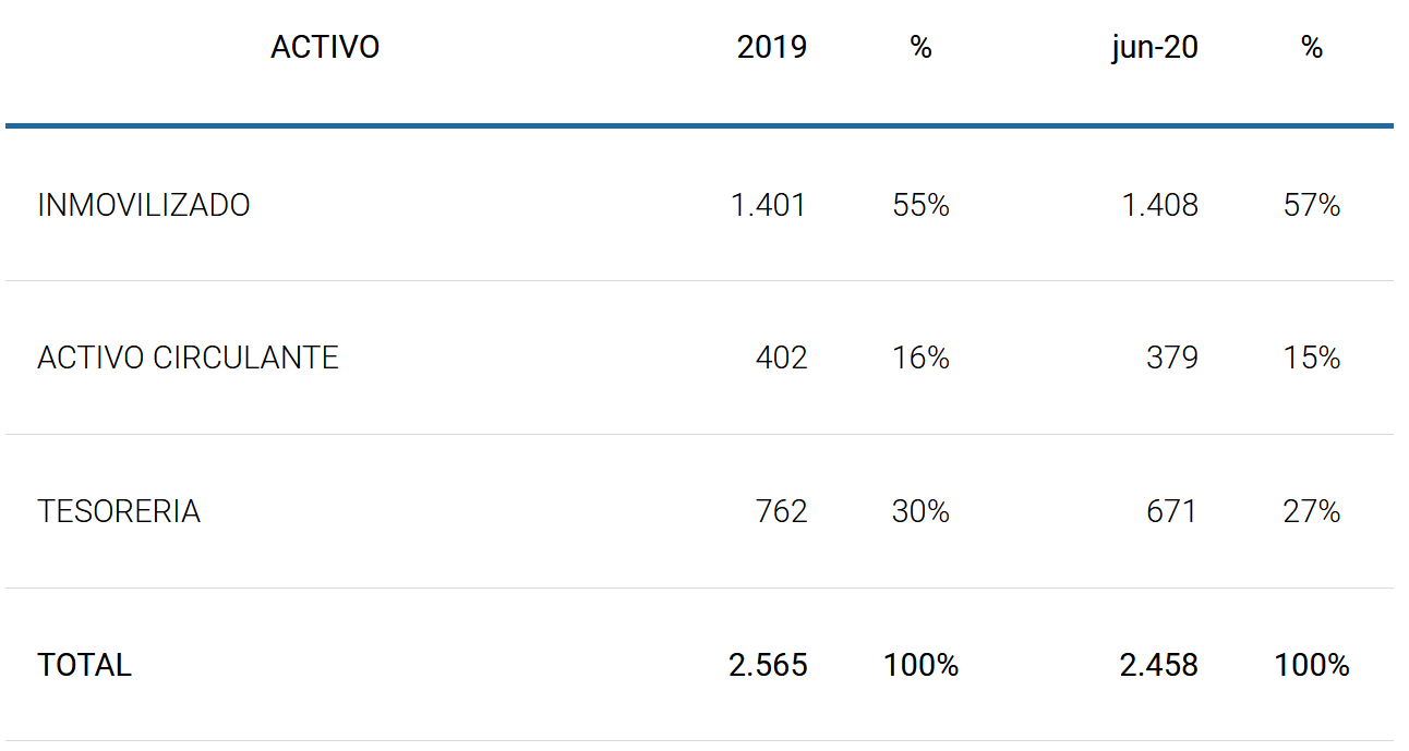 El resumen del balance de situación de la empresa a 31/12/2.019 y a 30/06/2020 es el siguiente: