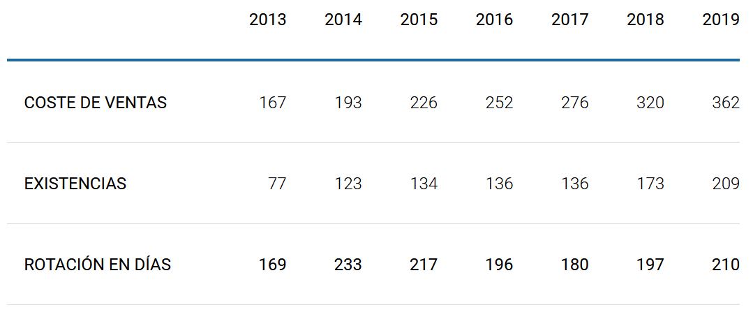 El único aspecto negativo es la baja rotación de sus existencias: