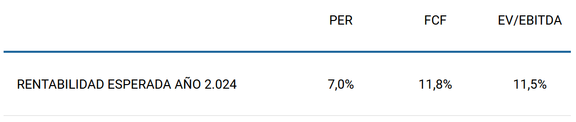 La rentabilidad anual esperada en caso de que se mantenga la inversión hasta el año 2.024 se sitúa entre el 7% y el 11,5%.
