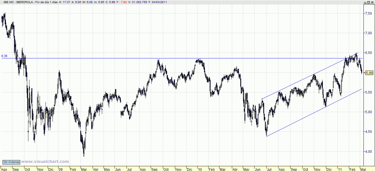 Retomamos las posiciones bajistas en un título que no es capaz de confirmar consistentemente por encima de su gran resistencia de medio plazo, los 6,35. Dado que es una estrategia con aparentes beneficios, conviene dinamizar el stop hasta los 6,10