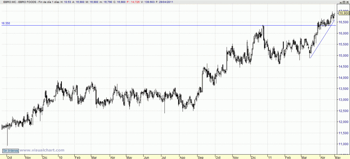 Imparable en la consecución de nuevos máximos históricos. Es posible incorporarse a esta tendencia en la medida en que respete un stop loss no por debajo de 16,30 en precios de cierre