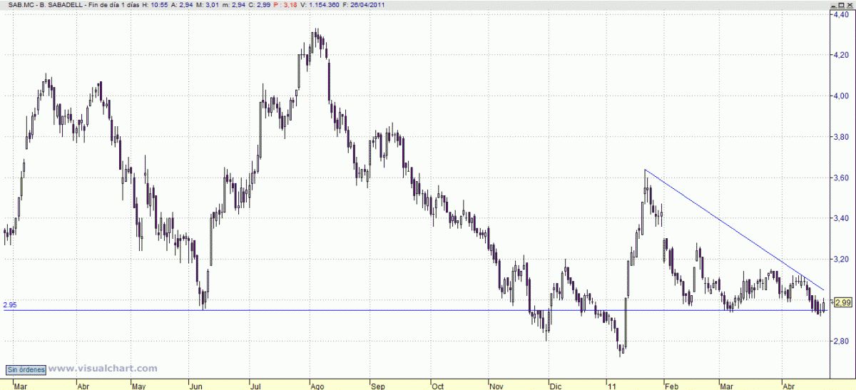 Parece rebotar por enésima vez a medio plazo en el soporte de 2,94, por lo que planteamos posiciones compradoras con stop loss en 2,90 en precios de cierre