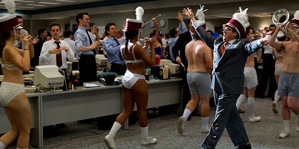 Del mismo modo, tras ver la película, me gustaría señalar algo a los alumnos del MBF, pocas veces podrán ver un mejor ejercicio de cómo no se deben de hacer las cosas en su trabajo que en esta historia que nos cuenta Scorsese. Su personaje principal, el bróker Jordan Belfort, interpretado por Leonardo Dicaprio, sólo tiene un objetivo: ganar dinero. Para ello, crea una compañía, con una imagen “seria” y la dota de un nombre con connotaciones de rancio abolengo anglosajón, Stratton Oakmont, aunque la realidad es que algunos de los brokers que Belfort contrata no tengan más experiencia comercial que el trapicheo de sustancias ilegales. Su dinámica diaria consiste en especular con acciones de a centavo, para estafar, engañar y robar a sus clientes. Lo importante, la comisión. Lo de menos, la seguridad de las inversiones. ¿Cómo? Haciendo subir artificialmente los valores. A los clientes, que les den. Literalmente. Craso error. Con todo ello, Belfort concede una entrevista a la revista Forbes, la cual publica un artículo en el que lo llaman “El Lobo de Wall Street”. Pese a que inicialmente Belfort se enfada por el mote que le han otorgado, la reacción de centenares de jóvenes financieros que, tras leer el artículo, acuden a sus oficinas a presentarle sus curriculums para que los contrate le halaga en sobremanera. A partir de ahí, ya no dejará de “aullar” en sus reuniones/arengas comerciales a su plantilla.