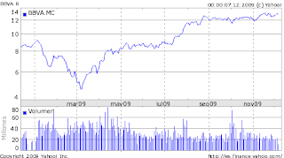 BBVA tiene una sólida posición de liderazgo en el mercado español. Es muy probable que se den subidas en los precios con el objetivo de alcanzar el nivel de los 14 euros (que como consecuencia llevará, seguramente a los niveles de los 18 euros, o incluso superiores).