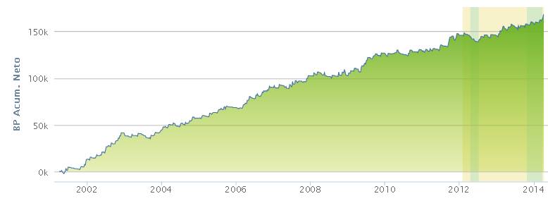 Me refiero al sistema Optimatrix cuya curva de resultados histórica y real /auditado (con fondo de color) es la que muestro a continuación