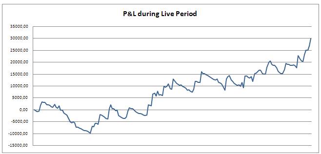 habiendo obtenido 29.980€ desde entonces con un máximo DD de 10.600€. Su peor mes fue de -3.868€ y su mejor mes de 6.806€.