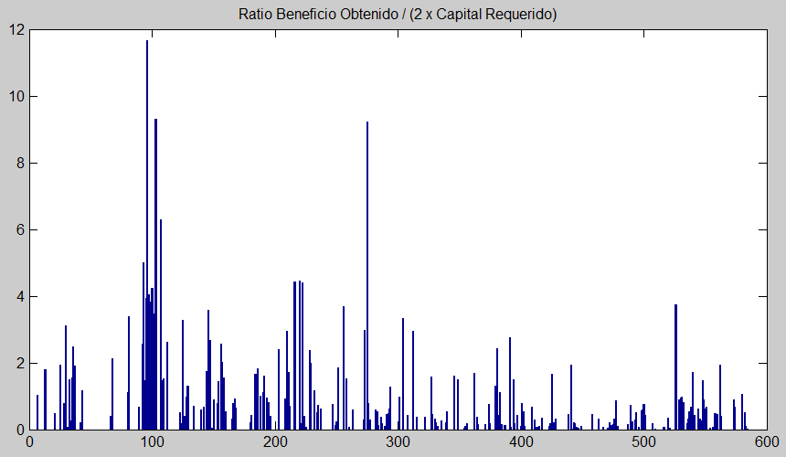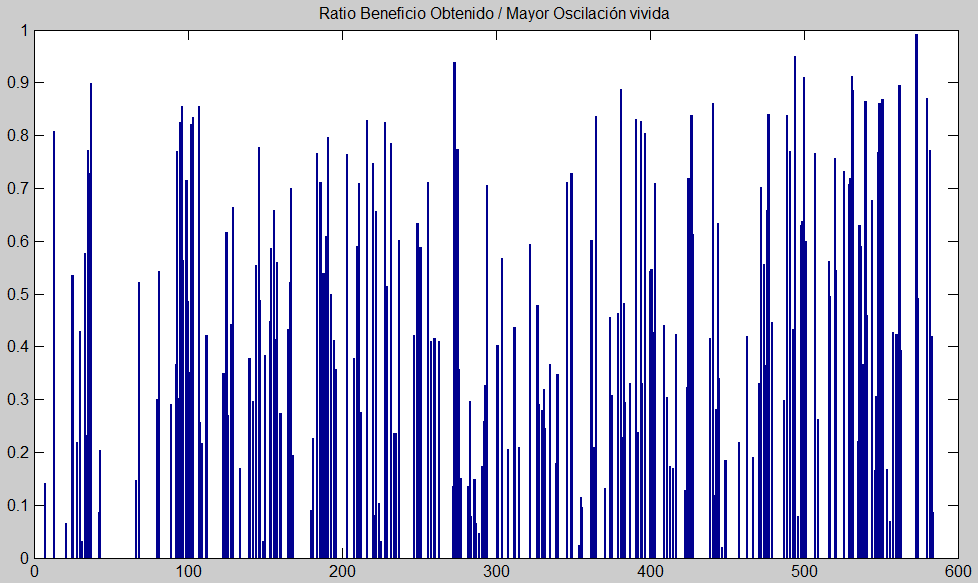 Por lo tanto, si calculamos un ratio Beneficio Obtenido / Oscilación vivida nos interesarían los sistemas con mayor ratio, ya que serían los más estables y que habrían sufrido menores oscilaciones para obtener dicho beneficio.