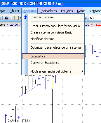 16.- En este punto el sistema ya se ha aplicado al gráfico y podemos ver sus estadísticas, seleccionando del menú “Sistemas” la opción “Estadística”