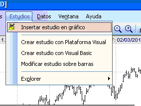 13.- Cuando aparecen la cotizaciones entonces seleccionamos del menú “Estudios” la opción “Insertar Estudio en gráfico”