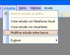 3.- Seleccionar del menú “Estudios” la opción “Modificar estudio sobre barras”: