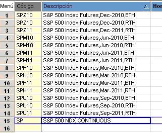 Y seleccionar el S&P 500 NDX CONTINUOUS