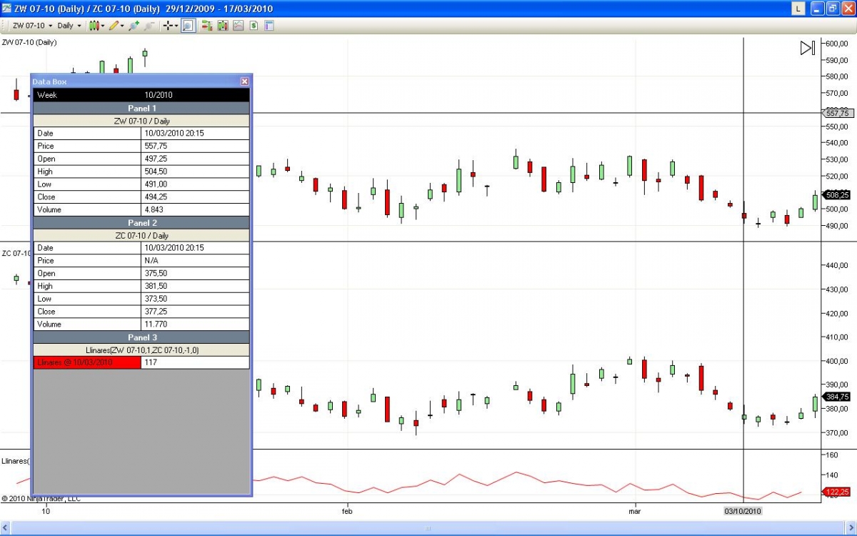 Estrategia spread Trigo menos Maíz (Contrato ZW y ZC vencimiento Julio 2010)