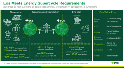EOS ha tenido una gran recuperación desde mínimos en este año, pero si miramos al precio que salió a bolsa, a penas a comenzado a subir, con una capitalización de unos 5 mil millones, y teniendo en cuenta el enorme mercado de almacenamiento de energía que se compite a futuro, creo que a EOS Energy aún le queda mucho recorrido futuro...