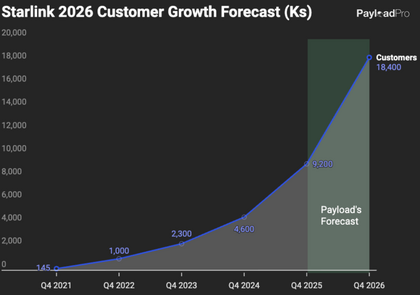Previsión de clientes de Starlink para este año 2026.