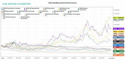 Veamos en este pequeño resumen del año 2025 como lo ha hecho el NewSpace cotizado y algunos de los principales ETFs espaciales: