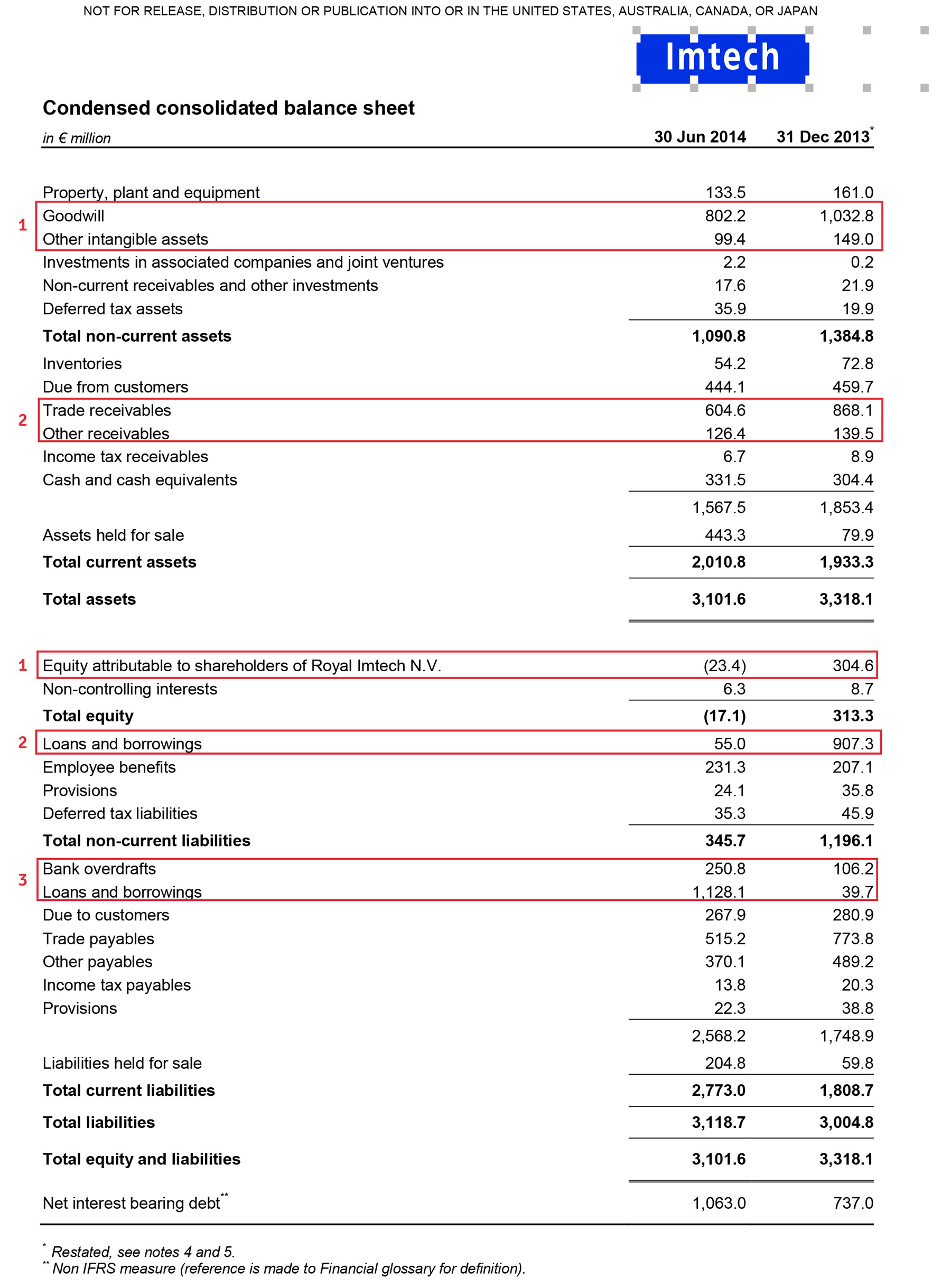 Y es que en los primeros 6 meses de 2014 los resultados de Royal Imtech no dejan demasiado lugar para el optimismo. A parte de la segunda ampliación de capital, en verano de 2014 se ha anunciado la venta de ICT, una de las divisiones más rentables de Imtech, a Vinci por 255 millones de euros. Ese precio equivale a unas 7x EBITDA y 1.1x su valor en libros. Eso son rebajas y no lo del Corte Inglés.