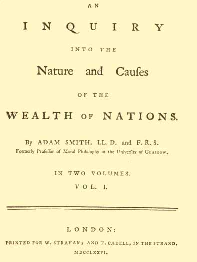Otro de los grandes pensadores, Adam Smith, también teorizaba sobre ello en su obra cumbre "La Riqueza de las Naciones" (aquí podemos encontrar un buen resumen del libro, en pocas líneas, para todo aquél que quiera saber de qué va y no tenga la fuerza de voluntad suficiente de leerse todo el tocho -yo, por ejemplo-): “Que la riqueza consiste en dinero, o en oro y plata, es una idea popular, derivada de las distintas funciones del dinero, como instrumento de comercio y como medida del valor […]. Como consecuencia de la segunda de esas funciones, estimamos todas las demás cosas por la cantidad de dinero que podemos conseguir a cambio de ellas”.