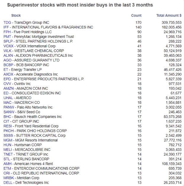 Recientemente, se ha publicado en EEUU el listado de las acciones más compradas por Insiders del último trimestre y que sin duda nos puede ayudar a filtrar valores para nuestra cartera: