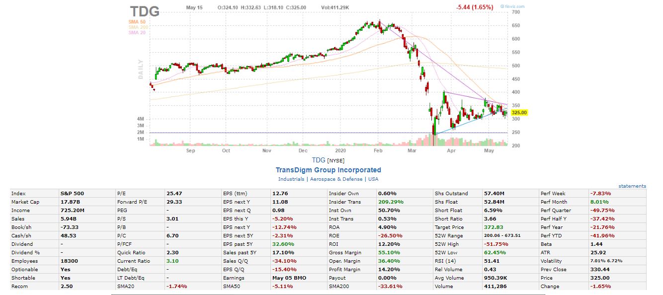 Os dejo el ejemplo de TDG - TransDigm Group INC (Sector Aeroespacial y Defensa):