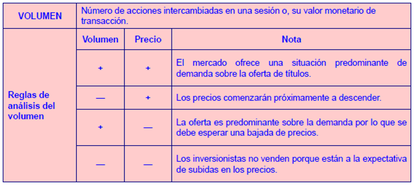 Por tanto, siguiendo la teoría de Dow y aplicando el criterio del Volumen, nuestra operativa deberá estar motivada según los siguientes principios: