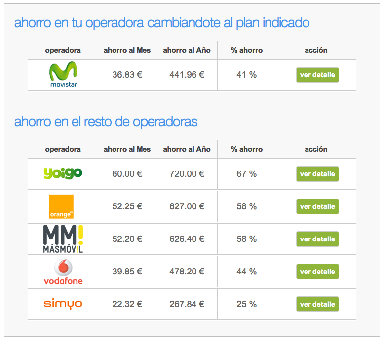 Una vez analizados nuestros gastos, DoctorSIM nos ofrecerá tarifas alternativas y con las que ahorraremos mucho dinero.